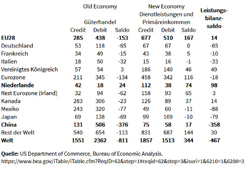 bei den Waren, verschweigt aber, dass die USA bei Dienstleistungen und